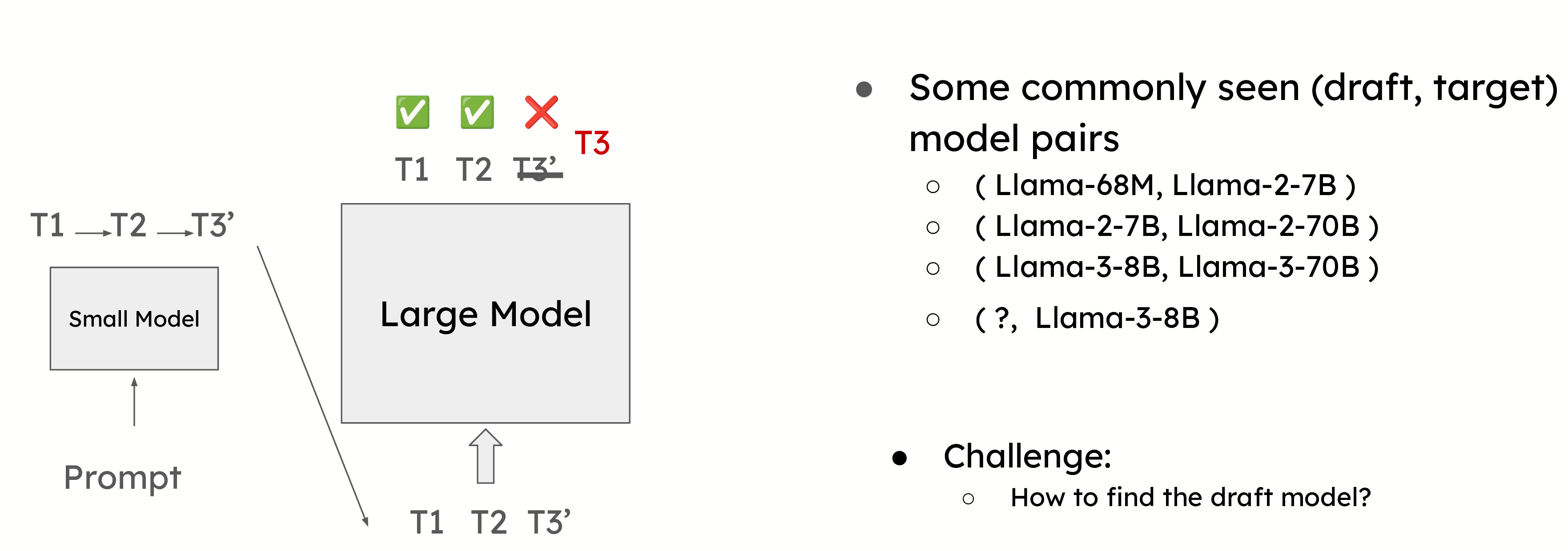- 目標模型驗證:較大的模型在單個前向傳遞中驗證這些令牌。它確認正確的令牌並糾正任何不正確的令牌。