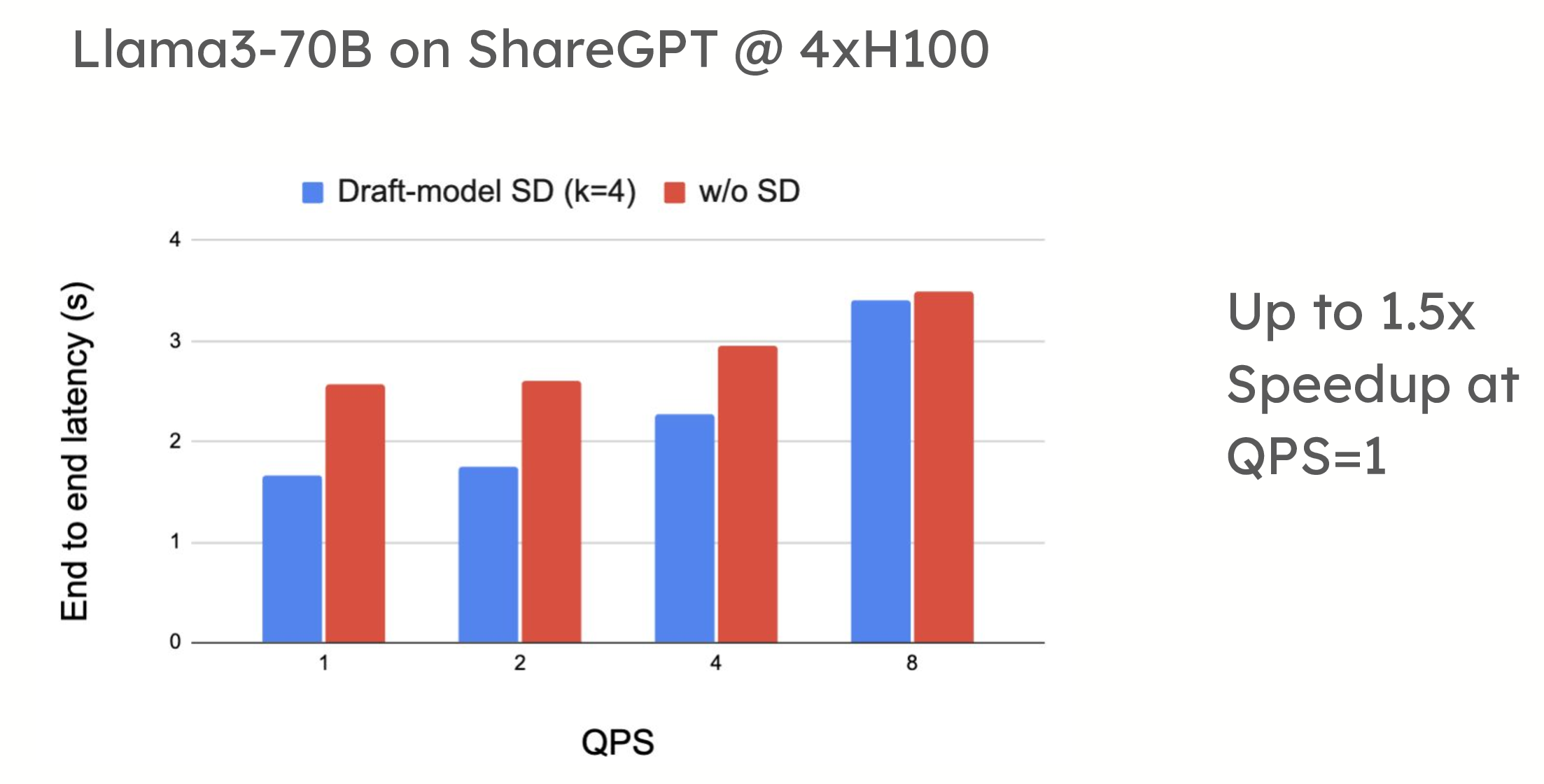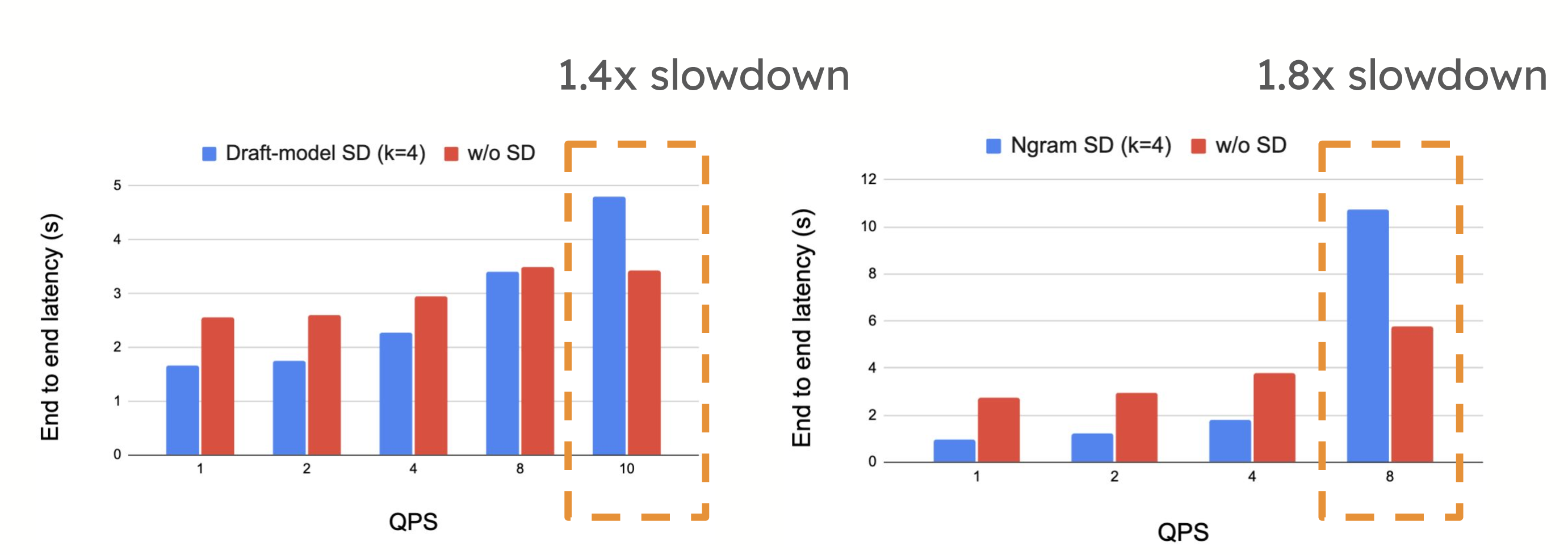 然而,在高 QPS 環境中,投機解碼可能會引入效能權衡。當系統已經受到計算限制時,提議和驗證令牌所需的額外計算有時會減慢系統速度,正如每秒請求數增加時所看到的那樣。在這種情況下,投機解碼的開銷可能會超過其優勢,從而導致效能下降。
